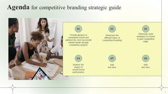 Find a pre-designed and impeccable Agenda For Competitive Branding Strategic Guide Designs PDF The templates can ace your presentation without additional effort. You can download these easy-to-edit presentation templates to make your presentation stand out from others. So, what are you waiting for Download the template from Slidegeeks today and give a unique touch to your presentation. Our Agenda For Competitive Branding Strategic Guide Designs PDF are topically designed to provide an attractive backdrop to any subject. Use them to look like a presentation pro.