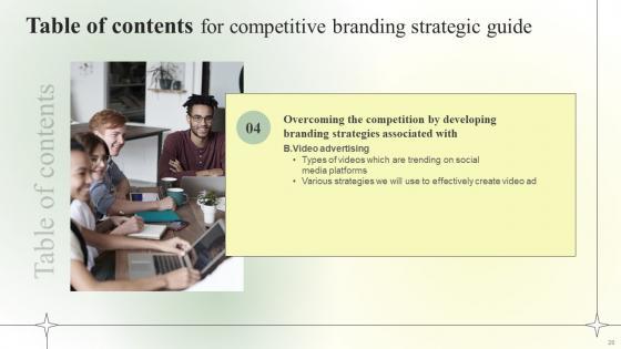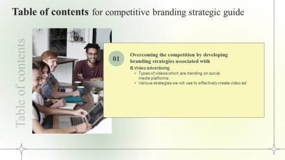 Whether you have daily or monthly meetings, a brilliant presentation is necessary. Competitive Branding Strategic Guide Table Of Contents Mockup PDF can be your best option for delivering a presentation. Represent everything in detail using Competitive Branding Strategic Guide Table Of Contents Mockup PDF and make yourself stand out in meetings. The template is versatile and follows a structure that will cater to your requirements. All the templates prepared by Slidegeeks are easy to download and edit. Our research experts have taken care of the corporate themes as well. So, give it a try and see the results. Our Competitive Branding Strategic Guide Table Of Contents Mockup PDF are topically designed to provide an attractive backdrop to any subject. Use them to look like a presentation pro.