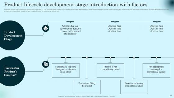 This slide covers brief summary of introductory stage in PLC. The purpose of this slide is to provide key factors that determines the products success and growth at the initial stage of product lifecycle. It includes factors such as poorly designed functionality, product not competitively prices, not appropriate planning for promotional budget, etc. The Product Lifecycle Development Stage Introduction Comprehensive Guide To Product Lifecycle Information Pdf is a compilation of the most recent design trends as a series of slides. It is suitable for any subject or industry presentation, containing attractive visuals and photo spots for businesses to clearly express their messages. This template contains a variety of slides for the user to input data, such as structures to contrast two elements, bullet points, and slides for written information. Slidegeeks is prepared to create an impression. This slide covers brief summary of introductory stage in PLC. The purpose of this slide is to provide key factors that determines the products success and growth at the initial stage of product lifecycle. It includes factors such as poorly designed functionality, product not competitively prices, not appropriate planning for promotional budget, etc.