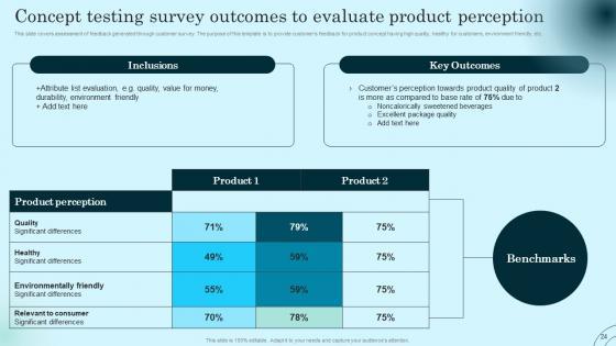 This slide covers assessment of feedback generated through customer survey. The purpose of this template is to provide customers feedback for product concept having high quality, healthy for customers, environment friendly, etc. Get a simple yet stunning designed Concept Testing Survey Outcomes To Evaluate Comprehensive Guide To Product Lifecycle Themes Pdf. It is the best one to establish the tone in your meetings. It is an excellent way to make your presentations highly effective. So, download this PPT today from Slidegeeks and see the positive impacts. Our easy to edit Concept Testing Survey Outcomes To Evaluate Comprehensive Guide To Product Lifecycle Themes Pdf can be your go to option for all upcoming conferences and meetings. So, what are you waiting for Grab this template today. This slide covers assessment of feedback generated through customer survey. The purpose of this template is to provide customers feedback for product concept having high quality, healthy for customers, environment friendly, etc.