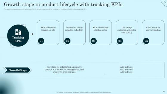 This slide covers summary of growth stage in PLC to provide insights on KPIs essential for tracking product. It includes tracking KPIs. If you are looking for a format to display your unique thoughts, then the professionally designed Growth Stage In Product Lifecycle With Tracking Comprehensive Guide To Product Lifecycle Themes Pdf is the one for you. You can use it as a Google Slides template or a PowerPoint template. Incorporate impressive visuals, symbols, images, and other charts. Modify or reorganize the text boxes as you desire. Experiment with shade schemes and font pairings. Alter, share or cooperate with other people on your work. Download Growth Stage In Product Lifecycle With Tracking Comprehensive Guide To Product Lifecycle Themes Pdf and find out how to give a successful presentation. Present a perfect display to your team and make your presentation unforgettable. This slide covers summary of growth stage in PLC to provide insights on KPIs essential for tracking product. It includes tracking KPIs.