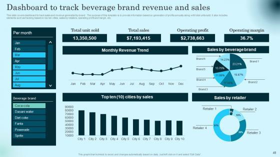 This slide covers dashboard to track sales and revenue generated by brand . The purpose of this template is to provide information based on generation of profits annually along with total units sold. It also includes elements such as tracking based on top ten cities, sales by retailers, operating profit and margin, etc. Present like a pro with Dashboard To Track Beverage Brand Revenue Comprehensive Guide To Product Lifecycle Graphics Pdf Create beautiful presentations together with your team, using our easy to use presentation slides. Share your ideas in real time and make changes on the fly by downloading our templates. So whether you are in the office, on the go, or in a remote location, you can stay in sync with your team and present your ideas with confidence. With Slidegeeks presentation got a whole lot easier. Grab these presentations today. This slide covers dashboard to track sales and revenue generated by brand . The purpose of this template is to provide information based on generation of profits annually along with total units sold. It also includes elements such as tracking based on top ten cities, sales by retailers, operating profit and margin, etc.