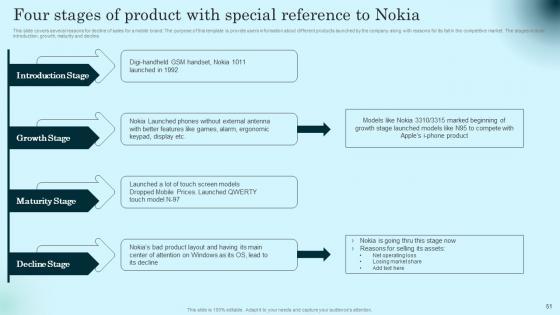 This slide covers several reasons for decline of sales for a mobile brand. The purpose of this template is provide users information about different products launched by the company along with reasons for its fall in the competitive market. The stages include introduction, growth, maturity and decline. Find highly impressive Four Stages Of Product With Special Reference Comprehensive Guide To Product Lifecycle Graphics Pdf on Slidegeeks to deliver a meaningful presentation. You can save an ample amount of time using these presentation templates. No need to worry to prepare everything from scratch because Slidegeeks experts have already done a huge research and work for you. You need to download Four Stages Of Product With Special Reference Comprehensive Guide To Product Lifecycle Graphics Pdf for your upcoming presentation. All the presentation templates are 100 percent editable and you can change the color and personalize the content accordingly. Download now This slide covers several reasons for decline of sales for a mobile brand. The purpose of this template is provide users information about different products launched by the company along with reasons for its fall in the competitive market. The stages include introduction, growth, maturity and decline.