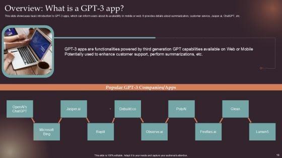 This slide showcases basic introduction to GPT 3 apps, which can inform users about its availability in mobile or web. It provides details about summarization, customer service, Jasper.ai, ChatGPT, etc. Slidegeeks has constructed Comprehensive Resource Guide To Master GPT 3 Overview What Is A GPT 3 App Demonstration PDF after conducting extensive research and examination. These presentation templates are constantly being generated and modified based on user preferences and critiques from editors. Here, you will find the most attractive templates for a range of purposes while taking into account ratings and remarks from users regarding the content. This is an excellent jumping off point to explore our content and will give new users an insight into our top notch PowerPoint Templates.