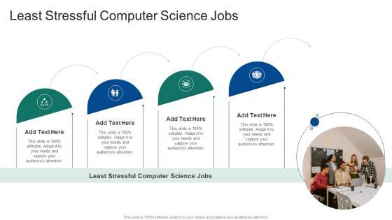 Introducing our well-designed Least Stressful Computer Science Jobs In Powerpoint And Google Slides Cpb. This PowerPoint design presents information on topics like Least Stressful Computer Science Jobs. As it is predesigned it helps boost your confidence level. It also makes you a better presenter because of its high-quality content and graphics. This PPT layout can be downloaded and used in different formats like PDF, PNG, and JPG. Not only this, it is available in both Standard Screen and Widescreen aspect ratios for your convenience. Therefore, click on the download button now to persuade and impress your audience. Our Least Stressful Computer Science Jobs In Powerpoint And Google Slides Cpb are topically designed to provide an attractive backdrop to any subject. Use them to look like a presentation pro.