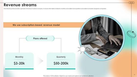 The following slide provides a glimpse of revenue model of company. It shows information related to monthly subscription and quarterly subscription amounts charged to companies. This Revenue Streams Content Marketing Platform Investor Funding Elevator Pitch Deck is perfect for any presentation, be it in front of clients or colleagues. It is a versatile and stylish solution for organizing your meetings. The Revenue Streams Content Marketing Platform Investor Funding Elevator Pitch Deck features a modern design for your presentation meetings. The adjustable and customizable slides provide unlimited possibilities for acing up your presentation. Slidegeeks has done all the homework before launching the product for you. So, do not wait, grab the presentation templates today The following slide provides a glimpse of revenue model of company. It shows information related to monthly subscription and quarterly subscription amounts charged to companies.