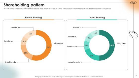 This slide exhibits a shareholding pattern that helps to provide clarity on ownership structure. It covers details of shareholders name, percentage of share before and after funding periods. Welcome to our selection of the Shareholding Pattern Content Marketing Platform Investor Funding Elevator Pitch Deck. These are designed to help you showcase your creativity and bring your sphere to life. Planning and Innovation are essential for any business that is just starting out. This collection contains the designs that you need for your everyday presentations. All of our PowerPoints are 100Percent editable, so you can customize them to suit your needs. This multi-purpose template can be used in various situations. Grab these presentation templates today. This slide exhibits a shareholding pattern that helps to provide clarity on ownership structure. It covers details of shareholders name, percentage of share before and after funding periods.