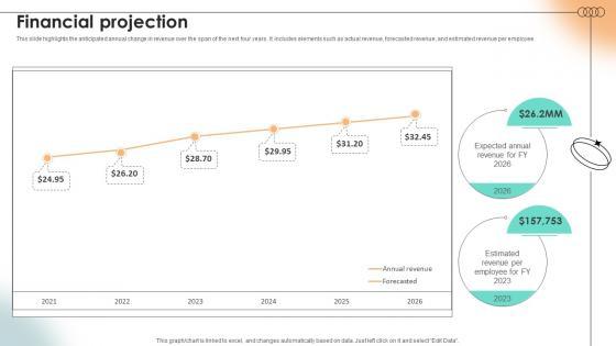 This slide highlights the anticipated annual change in revenue over the span of the next four years. It includes elements such as actual revenue, forecasted revenue, and estimated revenue per employee. Do you have an important presentation coming up Are you looking for something that will make your presentation stand out from the rest Look no further than Financial Projection Content Marketing Platform Investor Funding Elevator Pitch Deck. With our professional designs, you can trust that your presentation will pop and make delivering it a smooth process. And with Slidegeeks, you can trust that your presentation will be unique and memorable. So why wait Grab Financial Projection Content Marketing Platform Investor Funding Elevator Pitch Deck today and make your presentation stand out from the rest This slide highlights the anticipated annual change in revenue over the span of the next four years. It includes elements such as actual revenue, forecasted revenue, and estimated revenue per employee.