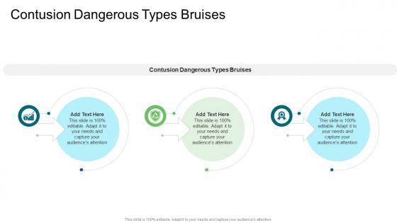 Introducing our well designed Contusion Dangerous Types Bruises In Powerpoint And Google Slides Cpb. This PowerPoint design presents information on topics like Contusion Dangerous Types Bruises. As it is predesigned it helps boost your confidence level. It also makes you a better presenter because of its high quality content and graphics. This PPT layout can be downloaded and used in different formats like PDF, PNG, and JPG. Not only this, it is available in both Standard Screen and Widescreen aspect ratios for your convenience. Therefore, click on the download button now to persuade and impress your audience. Our Contusion Dangerous Types Bruises In Powerpoint And Google Slides Cpb are topically designed to provide an attractive backdrop to any subject. Use them to look like a presentation pro.