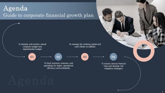 Slidegeeks is one of the best resources for PowerPoint templates. You can download easily and regulate Agenda Guide To Corporate Financial Growth Plan Template Pdf for your personal presentations from our wonderful collection. A few clicks is all it takes to discover and get the most relevant and appropriate templates. Use our Templates to add a unique zing and appeal to your presentation and meetings. All the slides are easy to edit and you can use them even for advertisement purposes. Our Agenda Guide To Corporate Financial Growth Plan Template Pdf are topically designed to provide an attractive backdrop to any subject. Use them to look like a presentation pro.