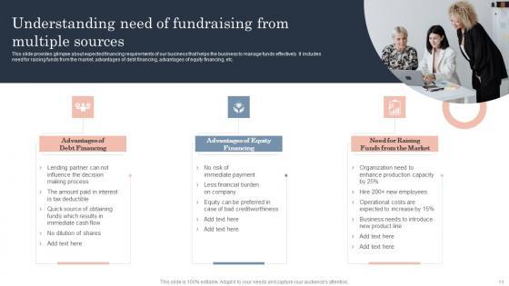 This slide provides glimpse about expected financing requirements of our business that helps the business to manage funds effectively. It includes need for raising funds from the market, advantages of debt financing, advantages of equity financing, etc.From laying roadmaps to briefing everything in detail, our templates are perfect for you. You can set the stage with your presentation slides. All you have to do is download these easy-to-edit and customizable templates. Understanding Need Of Fundraising From Multiple Guide To Corporate Financial Growth Plan Formats Pdf will help you deliver an outstanding performance that everyone would remember and praise you for. Do download this presentation today. This slide provides glimpse about expected financing requirements of our business that helps the business to manage funds effectively. It includes need for raising funds from the market, advantages of debt financing, advantages of equity financing, etc.