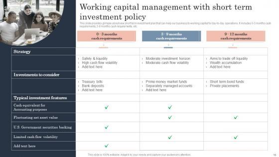 This slide provides glimpse about new short term investment plan that can help our business to working capital for day-to-day operations. It includes 0-3 months cash requirements, 3-9 months cash requirements, etc.Present like a pro with Working Capital Management With Short Term Guide To Corporate Financial Growth Plan Clipart Pdf Create beautiful presentations together with your team, using our easy-to-use presentation slides. Share your ideas in real-time and make changes on the fly by downloading our templates. So whether you are in the office, on the go, or in a remote location, you can stay in sync with your team and present your ideas with confidence. With Slidegeeks presentation got a whole lot easier. Grab these presentations today. This slide provides glimpse about new short term investment plan that can help our business to working capital for day to day operations. It includes 0 3 months cash requirements, 3 9 months cash requirements, etc.