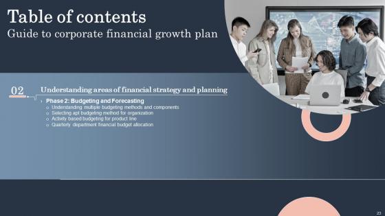Slidegeeks is one of the best resources for PowerPoint templates. You can download easily and regulate Table Of Contents Guide To Corporate Financial Growth Plan Designs Pdf for your personal presentations from our wonderful collection. A few clicks is all it takes to discover and get the most relevant and appropriate templates. Use our Templates to add a unique zing and appeal to your presentation and meetings. All the slides are easy to edit and you can use them even for advertisement purposes. Our Table Of Contents Guide To Corporate Financial Growth Plan Designs Pdf are topically designed to provide an attractive backdrop to any subject. Use them to look like a presentation pro.