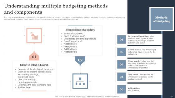 This slide provides glimpse about four common types of budgets that helps our business to forecast and allocate funds effectively. It includes budgeting methods such as incremental budgeting, activity based budgeting, value based budgeting, zero based budgeting, etc.Get a simple yet stunning designed Understanding Multiple Budgeting Methods And Guide To Corporate Financial Growth Plan Inspiration Pdf. It is the best one to establish the tone in your meetings. It is an excellent way to make your presentations highly effective. So, download this PPT today from Slidegeeks and see the positive impacts. Our easy-to-edit Understanding Multiple Budgeting Methods And Guide To Corporate Financial Growth Plan Inspiration Pdf can be your go-to option for all upcoming conferences and meetings. So, what are you waiting for Grab this template today. This slide provides glimpse about four common types of budgets that helps our business to forecast and allocate funds effectively. It includes budgeting methods such as incremental budgeting, activity based budgeting, value based budgeting, zero based budgeting, etc.