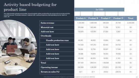 This slide provides glimpse about activity based budget for all the products that are proposed to be produced in the current fiscal year. It includes revenues, material costs, overhead expenses, total operating income, return on sales, etc.Create an editable Activity Based Budgeting For Product Guide To Corporate Financial Growth Plan Icons Pdf that communicates your idea and engages your audience. Whether you are presenting a business or an educational presentation, pre-designed presentation templates help save time. Activity Based Budgeting For Product Guide To Corporate Financial Growth Plan Icons Pdf is highly customizable and very easy to edit, covering many different styles from creative to business presentations. Slidegeeks has creative team members who have crafted amazing templates. So, go and get them without any delay. This slide provides glimpse about activity based budget for all the products that are proposed to be produced in the current fiscal year. It includes revenues, material costs, overhead expenses, total operating income, return on sales, etc.