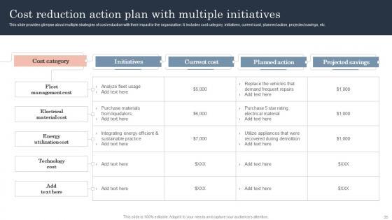 This slide provides glimpse about multiple strategies of cost reduction with their impact to the organization. It includes cost category, initiatives, current cost, planned action, projected savings, etc.Formulating a presentation can take up a lot of effort and time, so the content and message should always be the primary focus. The visuals of the PowerPoint can enhance the presenters message, so our Cost Reduction Action Plan With Multiple Guide To Corporate Financial Growth Plan Icons Pdf was created to help save time. Instead of worrying about the design, the presenter can concentrate on the message while our designers work on creating the ideal templates for whatever situation is needed. Slidegeeks has experts for everything from amazing designs to valuable content, we have put everything into Cost Reduction Action Plan With Multiple Guide To Corporate Financial Growth Plan Icons Pdf This slide provides glimpse about multiple strategies of cost reduction with their impact to the organization. It includes cost category, initiatives, current cost, planned action, projected savings, etc.