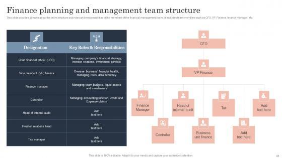 This slide provides glimpse about the team structure and roles and responsibilities of the members of the financial management team . It includes team members such as CFO, VP Finance, finance manager, etc.Explore a selection of the finest Finance Planning And Management Team Guide To Corporate Financial Growth Plan Mockup Pdf here. With a plethora of professionally designed and pre-made slide templates, you can quickly and easily find the right one for your upcoming presentation. You can use our Finance Planning And Management Team Guide To Corporate Financial Growth Plan Mockup Pdf to effectively convey your message to a wider audience. Slidegeeks has done a lot of research before preparing these presentation templates. The content can be personalized and the slides are highly editable. Grab templates today from Slidegeeks. This slide provides glimpse about the team structure and roles and responsibilities of the members of the financial management team . It includes team members such as CFO, VP Finance, finance manager, etc.