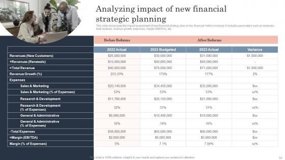 This slide showcases the impact assessment of new financial strategy plan on key financial metrics involved. It includes parameters such as revenues, total revenue, revenue growth, expenses, margin EBITDA, etc.From laying roadmaps to briefing everything in detail, our templates are perfect for you. You can set the stage with your presentation slides. All you have to do is download these easy-to-edit and customizable templates. Analyzing Impact Of New Financial Strategic Guide To Corporate Financial Growth Plan Guidelines Pdf will help you deliver an outstanding performance that everyone would remember and praise you for. Do download this presentation today. This slide showcases the impact assessment of new financial strategy plan on key financial metrics involved. It includes parameters such as revenues, total revenue, revenue growth, expenses, margin EBITDA, etc.