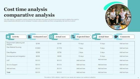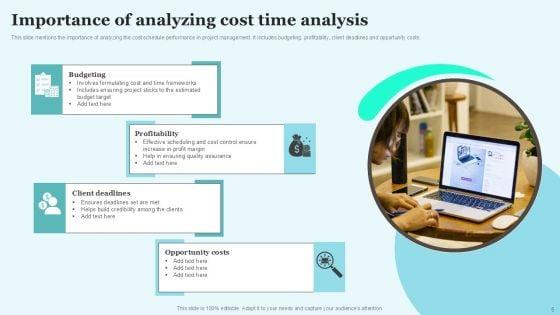 Improve your presentation delivery using this Cost Time Analysis Ppt PowerPoint Presentation Complete Deck With Slides. Support your business vision and objectives using this well-structured PPT deck. This template offers a great starting point for delivering beautifully designed presentations on the topic of your choice. Comprising twelve this professionally designed template is all you need to host discussion and meetings with collaborators. Each slide is self-explanatory and equipped with high-quality graphics that can be adjusted to your needs. Therefore, you will face no difficulty in portraying your desired content using this PPT slideshow. This PowerPoint slideshow contains every important element that you need for a great pitch. It is not only editable but also available for immediate download and utilization. The color, font size, background, shapes everything can be modified to create your unique presentation layout. Therefore, download it now.