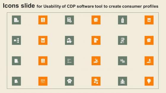 Presenting our innovatively structured Icons Slide For Usability Of CDP Software Tool To Create Consumer Profiles Brochure Pdf set of slides. The slides contain a hundred percent editable icons. You can replace these icons without any inconvenience. Therefore, pick this set of slides and create a striking presentation. Our Icons Slide For Usability Of CDP Software Tool To Create Consumer Profiles Brochure Pdf are topically designed to provide an attractive backdrop to any subject. Use them to look like a presentation pro.