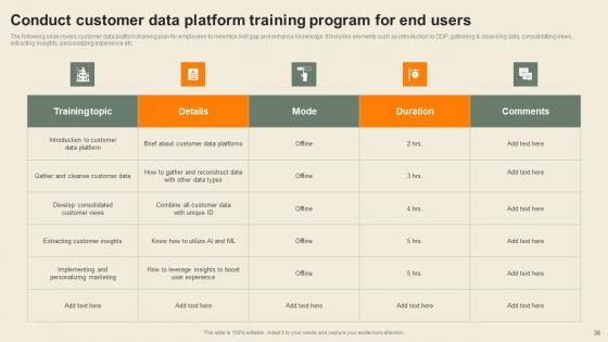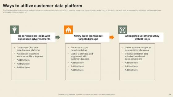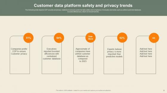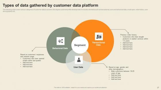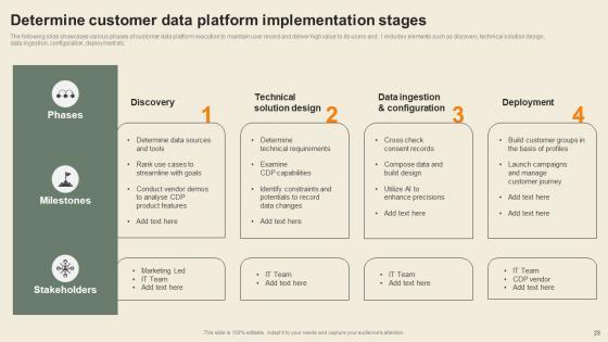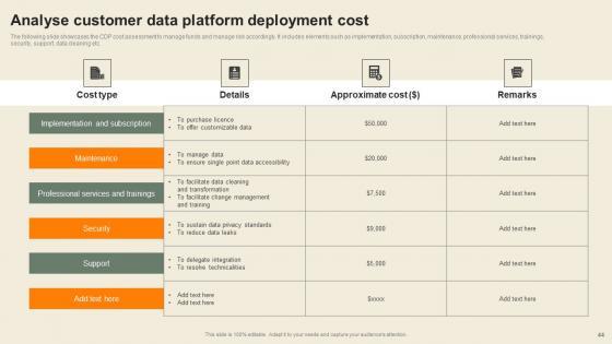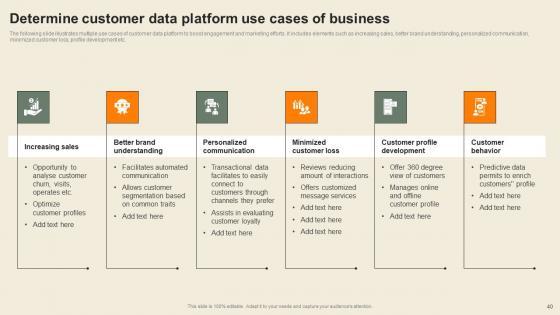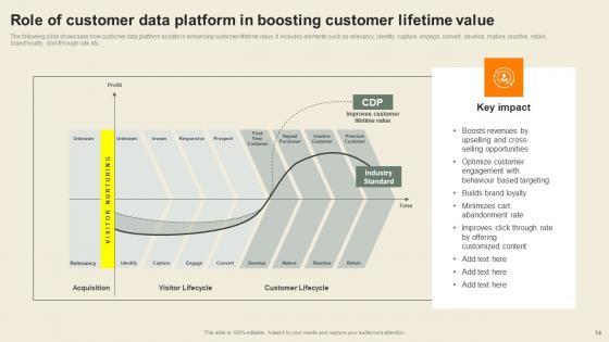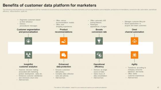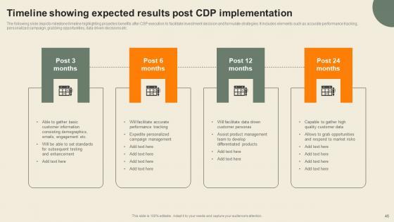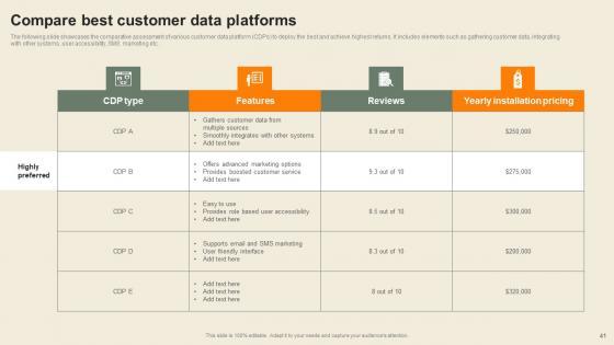 This Usability Of CDP Software Tool To Create Consumer Profiles Complete Deck is designed to help you retain your audiences attention. This content-ready PowerPoint Template enables you to take your audience on a journey and share information in a way that is easier to recall. It helps you highlight the crucial parts of your work so that the audience does not get saddled with information download. This sixty six slide PPT Deck comes prepared with the graphs and charts you could need to showcase your information through visuals. You only need to enter your own data in them. Download this editable PowerPoint Theme and walk into that meeting with confidence. Our Usability Of CDP Software Tool To Create Consumer Profiles Complete Deck are topically designed to provide an attractive backdrop to any subject. Use them to look like a presentation pro.