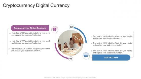 Introducing our well-designed Cryptocurrency Digital Currency In Powerpoint And Google Slides Cpb. This PowerPoint design presents information on topics like Cryptocurrency Digital Currency. As it is predesigned it helps boost your confidence level. It also makes you a better presenter because of its high-quality content and graphics. This PPT layout can be downloaded and used in different formats like PDF, PNG, and JPG. Not only this, it is available in both Standard Screen and Widescreen aspect ratios for your convenience. Therefore, click on the download button now to persuade and impress your audience. Our Cryptocurrency Digital Currency In Powerpoint And Google Slides Cpb are topically designed to provide an attractive backdrop to any subject. Use them to look like a presentation pro.
