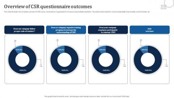 This slide illustrate the complete overview of CSR survey conducted by organization to increase responsibility reputation. Result provided related to social sustainability responsibility, environmental, etc. Pitch your topic with ease and precision using this Overview Of CSR Questionnaire Outcomes Portrait Pdf This layout presents information on Company Organize, Training Program, Participated In External It is also available for immediate download and adjustment. So, changes can be made in the color, design, graphics or any other component to create a unique layout. This slide illustrate the complete overview of CSR survey conducted by organization to increase responsibility reputation. Result provided related to social sustainability responsibility, environmental, etc.