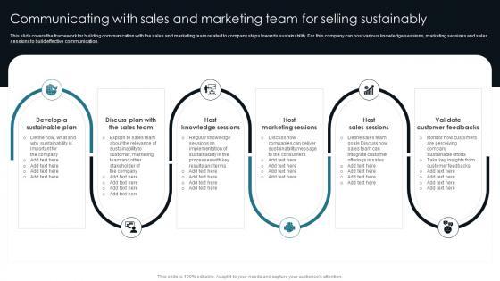 This slide covers the framework for building communication with the sales and marketing team related to company steps towards sustainability. For this company can host various knowledge sessions, marketing sessions and sales sessions to build effective communication. Create an editable Communicating With Sales And Marketing Team Customer Centric Advertising Clipart PDF that communicates your idea and engages your audience. Whether you are presenting a business or an educational presentation, pre-designed presentation templates help save time. Communicating With Sales And Marketing Team Customer Centric Advertising Clipart PDF is highly customizable and very easy to edit, covering many different styles from creative to business presentations. Slidegeeks has creative team members who have crafted amazing templates. So, go and get them without any delay. This slide covers the framework for building communication with the sales and marketing team related to company steps towards sustainability. For this company can host various knowledge sessions, marketing sessions and sales sessions to build effective communication.