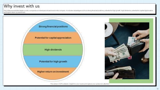 This slide presents the details on why companies or individuals should invest in the company. It includes advantages such as strong financial positions, potential for high growth, high dividends, potential for capital appreciation,and higher return on investment. The best PPT templates are a great way to save time, energy, and resources. Slidegeeks have 100 percent editable powerpoint slides making them incredibly versatile. With these quality presentation templates, you can create a captivating and memorable presentation by combining visually appealing slides and effectively communicating your message. Download Why Invest With Us Customer Relationship Management Platform Pitch Deck from Slidegeeks and deliver a wonderful presentation. This slide presents the details on why companies or individuals should invest in the company. It includes advantages such as strong financial positions, potential for high growth, high dividends, potential for capital appreciation,and higher return on investment.