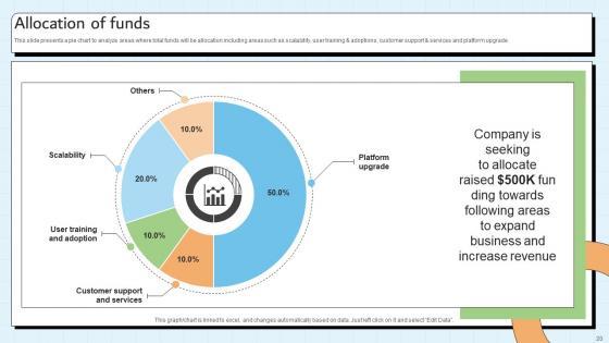 This slide presents a pie chart to analyze areas where total funds will be allocation including areas such as scalability, user training and adoptions, customer support and services and platform upgrade.Find a pre-designed and impeccable Allocation Of Funds Customer Relationship Management Platform Pitch Deck. The templates can ace your presentation without additional effort. You can download these easy-to-edit presentation templates to make your presentation stand out from others. So, what are you waiting for Download the template from Slidegeeks today and give a unique touch to your presentation. This slide presents a pie chart to analyze areas where total funds will be allocation including areas such as scalability, user training and adoptions, customer support and services and platform upgrade.