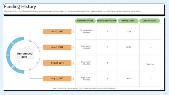 This slide provides information about the funding rounds and investors in the company. It includes details about funding announcement date, transaction name, number of investors, money raised. Do you have an important presentation coming up Are you looking for something that will make your presentation stand out from the rest Look no further than Funding History Customer Relationship Management Platform Pitch Deck. With our professional designs, you can trust that your presentation will pop and make delivering it a smooth process. And with Slidegeeks, you can trust that your presentation will be unique and memorable. So why wait Grab Funding History Customer Relationship Management Platform Pitch Deck today and make your presentation stand out from the rest This slide provides information about the funding rounds and investors in the company. It includes details about funding announcement date, transaction name, number of investors, money raised.