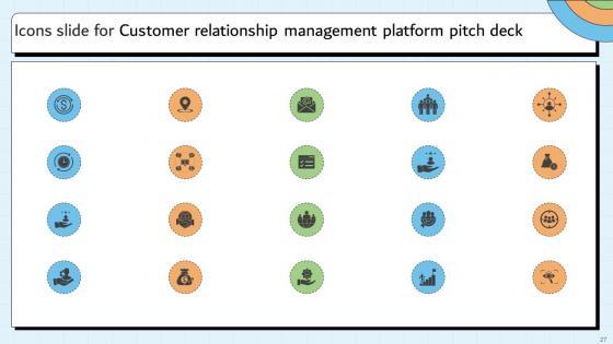 Whether you have daily or monthly meetings, a brilliant presentation is necessary. Icons Slide For Customer Relationship Management Platform Pitch Deck can be your best option for delivering a presentation. Represent everything in detail using Icons Slide For Customer Relationship Management Platform Pitch Deck and make yourself stand out in meetings. The template is versatile and follows a structure that will cater to your requirements. All the templates prepared by Slidegeeks are easy to download and edit. Our research experts have taken care of the corporate themes as well. So, give it a try and see the results. Our Icons Slide For Customer Relationship Management Platform Pitch Deck are topically designed to provide an attractive backdrop to any subject. Use them to look like a presentation pro.