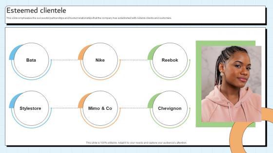 This slide emphasizes the successful partnerships and trusted relationships that the company has established with notable clients and customers. Get a simple yet stunning designed Esteemed Clientele Customer Relationship Management Platform Pitch Deck. It is the best one to establish the tone in your meetings. It is an excellent way to make your presentations highly effective. So, download this PPT today from Slidegeeks and see the positive impacts. Our easy-to-edit Esteemed Clientele Customer Relationship Management Platform Pitch Deck can be your go-to option for all upcoming conferences and meetings. So, what are you waiting for Grab this template today. This slide emphasizes the successful partnerships and trusted relationships that the company has established with notable clients and customers.