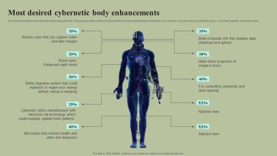 This slide shows the most desired cyber enhancements. The purpose of this slide is to describe the enhancement that are most likely to be done by humans such as cybernetic eyes, microchip implants, and many more. Get a simple yet stunning designed Most Desired Cybernetic Body Enhancements Cybernetic Integration Summary Pdf It is the best one to establish the tone in your meetings. It is an excellent way to make your presentations highly effective. So, download this PPT today from Slidegeeks and see the positive impacts. Our easy-to-edit Most Desired Cybernetic Body Enhancements Cybernetic Integration Summary Pdf can be your go-to option for all upcoming conferences and meetings. So, what are you waiting for Grab this template today. This slide shows the most desired cyber enhancements. The purpose of this slide is to describe the enhancement that are most likely to be done by humans such as cybernetic eyes, microchip implants, and many more.