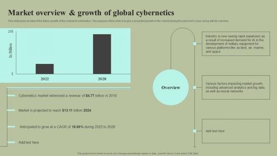 This slide gives an idea of the future growth of the market of cybernetics. The purpose of this slide is to give a projected growth of the market during the period of 6 years along with its overview. There are so many reasons you need a Market Overview And Growth Of Global Cybernetics Cybernetic Integration Pictures Pdf The first reason is you can not spend time making everything from scratch, Thus, Slidegeeks has made presentation templates for you too. You can easily download these templates from our website easily. This slide gives an idea of the future growth of the market of cybernetics. The purpose of this slide is to give a projected growth of the market during the period of 6 years along with its overview.