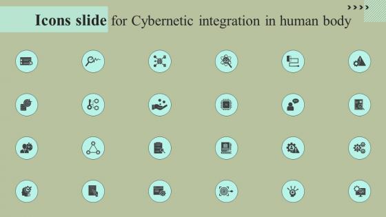 Download our innovative and attention grabbing Icons Slide For Cybernetic Integration In Human Body Designs Pdf template. The set of slides exhibit completely customizable icons. These icons can be incorporated into any business presentation. So download it immediately to clearly communicate with your clientele. Our Icons Slide For Cybernetic Integration In Human Body Designs Pdf are topically designed to provide an attractive backdrop to any subject. Use them to look like a presentation pro.