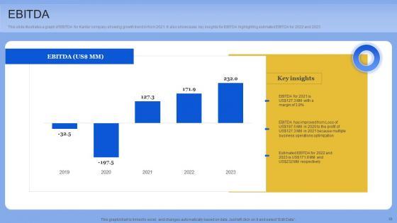 This slide illustrates a graph of EBITDA for Kantar company showing growth trend in from 2021. It also showcases key insights for EBITDA highlighting estimated EBITDA for 2022 and 2023. Present like a pro with Ebitda Data Analytics Company Outline Topics PDF Create beautiful presentations together with your team, using our easy-to-use presentation slides. Share your ideas in real-time and make changes on the fly by downloading our templates. So whether you are in the office, on the go, or in a remote location, you can stay in sync with your team and present your ideas with confidence. With Slidegeeks presentation got a whole lot easier. Grab these presentations today. This slide illustrates a graph of EBITDA for Kantar company showing growth trend in from 2021. It also showcases key insights for EBITDA highlighting estimated EBITDA for 2022 and 2023