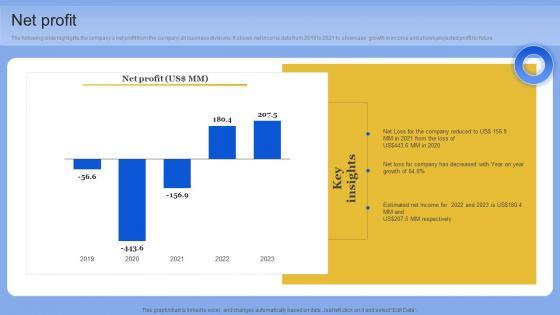 The following slide highlights the companys net profit from the company all business divisions. It shows net income data from 2019 to 2021 to showcase growth in income and shows projected profit for future. Retrieve professionally designed Net Profit Data Analytics Company Outline Diagrams PDF to effectively convey your message and captivate your listeners. Save time by selecting pre-made slideshows that are appropriate for various topics, from business to educational purposes. These themes come in many different styles, from creative to corporate, and all of them are easily adjustable and can be edited quickly. Access them as PowerPoint templates or as Google Slides themes. You do not have to go on a hunt for the perfect presentation because Slidegeeks got you covered from everywhere. The following slide highlights the companys net profit from the company all business divisions. It shows net income data from 2019 to 2021 to showcase growth in income and shows projected profit for future