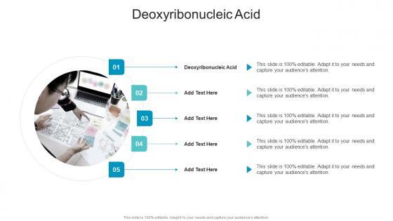 Introducing our well designed Deoxyribonucleic Acid In Powerpoint And Google Slides Cpb This PowerPoint design presents information on topics like Deoxyribonucleic Acid As it is predesigned it helps boost your confidence level. It also makes you a better presenter because of its high quality content and graphics. This PPT layout can be downloaded and used in different formats like PDF, PNG, and JPG. Not only this, it is available in both Standard Screen and Widescreen aspect ratios for your convenience. Therefore, click on the download button now to persuade and impress your audience. Our Deoxyribonucleic Acid In Powerpoint And Google Slides Cpb are topically designed to provide an attractive backdrop to any subject. Use them to look like a presentation pro.
