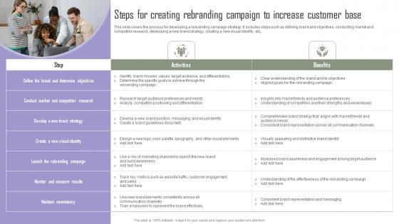 This slide covers the process for developing a rebranding campaign strategy. It includes steps such as defining brand and objectives, conducting market and competitor research, developing a new brand strategy, creating a new visual identity, etc. The best PPT templates are a great way to save time, energy, and resources. Slidegeeks have 100 percent editable powerpoint slides making them incredibly versatile. With these quality presentation templates, you can create a captivating and memorable presentation by combining visually appealing slides and effectively communicating your message. Download Steps For Creating Implementing Marketing Tactics To Drive Infographics Pdf from Slidegeeks and deliver a wonderful presentation. This slide covers the process for developing a rebranding campaign strategy. It includes steps such as defining brand and objectives, conducting market and competitor research, developing a new brand strategy, creating a new visual identity, etc.
