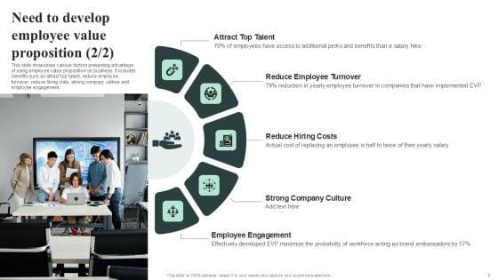 This slide showcases various factors presenting advantage of using employee value proposition on business. It includes benefits such as attract highly skilled professionals, retain top talent, optimize recruitment expenses, enhance corporate culture and improves employees experience. Slidegeeks has constructed Need To Develop Employee Value Proposition Structure PDF after conducting extensive research and examination. These presentation templates are constantly being generated and modified based on user preferences and critiques from editors. Here, you will find the most attractive templates for a range of purposes while taking into account ratings and remarks from users regarding the content. This is an excellent jumping off point to explore our content and will give new users an insight into our top notch PowerPoint Templates.