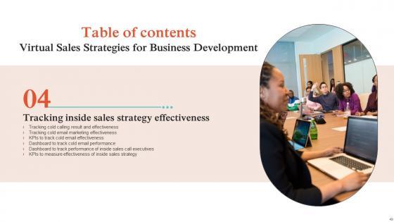 Create an editable Table Of Contents For Virtual Sales Strategies For Business Development Strategy SS V that communicates your idea and engages your audience. Whether you are presenting a business or an educational presentation, pre-designed presentation templates help save time. Table Of Contents For Virtual Sales Strategies For Business Development Strategy SS V is highly customizable and very easy to edit, covering many different styles from creative to business presentations. Slidegeeks has creative team members who have crafted amazing templates. So, go and get them without any delay. Our Table Of Contents For Virtual Sales Strategies For Business Development Strategy SS V are topically designed to provide an attractive backdrop to any subject. Use them to look like a presentation pro.