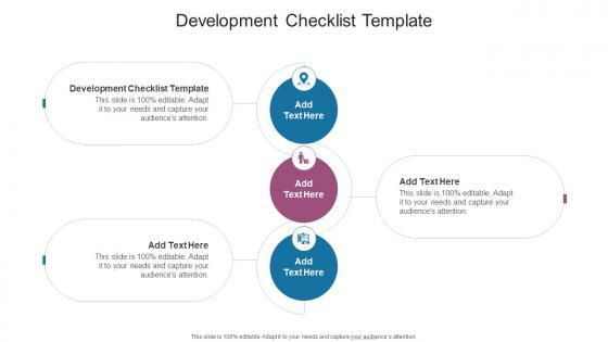 Introducing our well-designed Development Checklist Template In Powerpoint And Google Slides Cpb. This PowerPoint design presents information on topics like Development Checklist Template. As it is predesigned it helps boost your confidence level. It also makes you a better presenter because of its high-quality content and graphics. This PPT layout can be downloaded and used in different formats like PDF, PNG, and JPG. Not only this, it is available in both Standard Screen and Widescreen aspect ratios for your convenience. Therefore, click on the download button now to persuade and impress your audience. Our Development Checklist Template In Powerpoint And Google Slides Cpb are topically designed to provide an attractive backdrop to any subject. Use them to look like a presentation pro.
