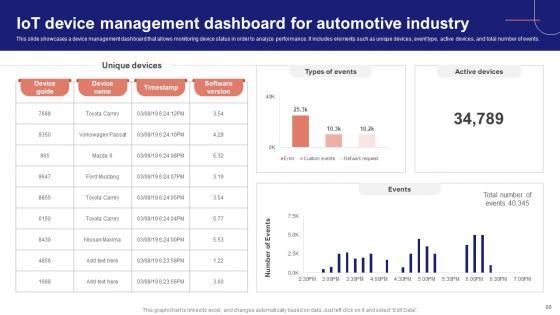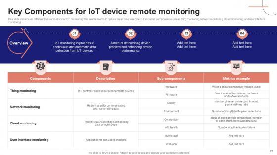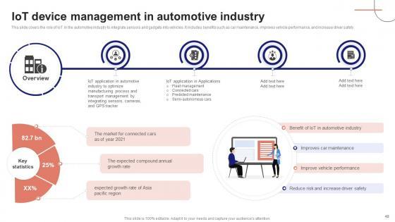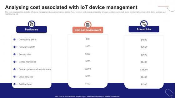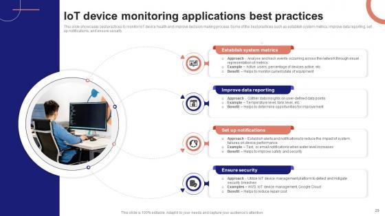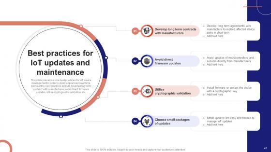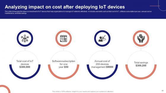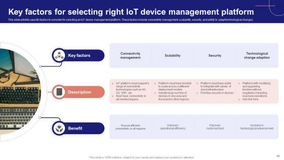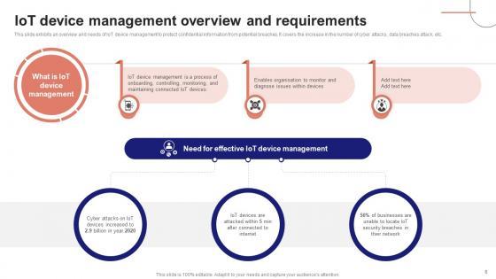 This ninety nine slide IoT Device Management Fundamentals And Key Platforms IoT CD V is your content ready tool to impress the stakeholders with your business planning and its manner of execution. Showcase your ideas and how you plan to make them real in detail with this PPT Template Bundle. The slides have the conceptual bandwidth to present the crucial aspects of your plan, such as funding, marketing, resource allocation, timeline, roadmap, and more. When you present your plans with this PPT Layout, the stakeholders are sure to come on board because you will be able to present a succinct, thought-out, winning project. Download this Complete Deck now to take control into your hands. The 100 percent customizable offer is just too good to be resisted. Our IoT Device Management Fundamentals And Key Platforms IoT CD V are topically designed to provide an attractive backdrop to any subject. Use them to look like a presentation pro.