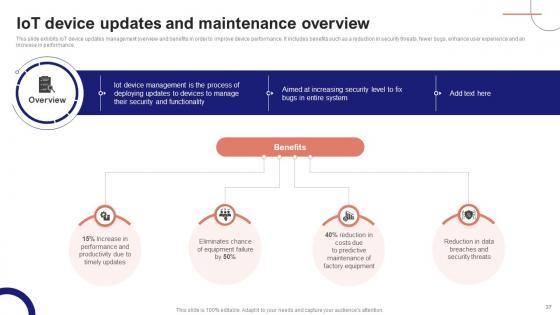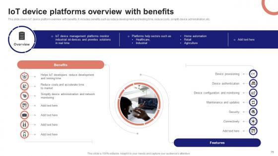 This slide covers IoT device platform overview with benefits. It includes benefits such as reduce development and testing time, reduce costs, simplify device administration, etc. Take your projects to the next level with our ultimate collection of Iot Device Platforms Overview With Benefits Iot Device Management Structure Pdf. Slidegeeks has designed a range of layouts that are perfect for representing task or activity duration, keeping track of all your deadlines at a glance. Tailor these designs to your exact needs and give them a truly corporate look with your own brand colors they will make your projects stand out from the rest This slide covers IoT device platform overview with benefits. It includes benefits such as reduce development and testing time, reduce costs, simplify device administration, etc.