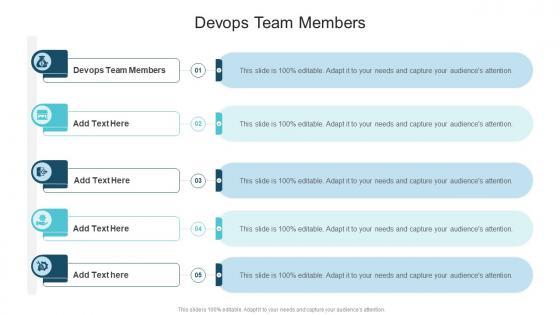 Introducing our well designed Devops Team Members In Powerpoint And Google Slides Cpb. This PowerPoint design presents information on topics like Devops Team Members. As it is predesigned it helps boost your confidence level. It also makes you a better presenter because of its high quality content and graphics. This PPT layout can be downloaded and used in different formats like PDF, PNG, and JPG. Not only this, it is available in both Standard Screen and Widescreen aspect ratios for your convenience. Therefore, click on the download button now to persuade and impress your audience. Our Devops Team Members In Powerpoint And Google Slides Cpb are topically designed to provide an attractive backdrop to any subject. Use them to look like a presentation pro.