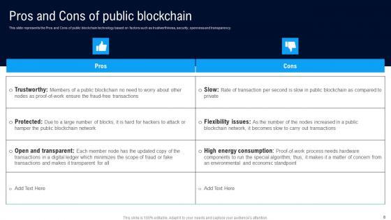 This slide represents the Pros and Cons of public blockchain technology based on factors such as trustworthiness, security, openness and transparency. Want to ace your presentation in front of a live audience Our Different Architectures Blockchain Pros And Cons Of Public Blockchain Ideas Pdf can help you do that by engaging all the users towards you. Slidegeeks experts have put their efforts and expertise into creating these impeccable powerpoint presentations so that you can communicate your ideas clearly. Moreover, all the templates are customizable, and easy to edit and downloadable. Use these for both personal and commercial use. This slide represents the Pros and Cons of public blockchain technology based on factors such as trustworthiness, security, openness and transparency.
