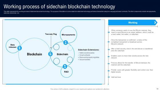 This slide represents the working process of sidechain blockchain technology. The purpose of this slide is to showcase how sidechain technology performs a transaction using two way peg and smart contracts. The other components include micropayments, sidechain, blockchain, etc. Whether you have daily or monthly meetings, a brilliant presentation is necessary. Working Process Of Sidechain Different Architectures Of Blockchain Microsoft Pdf can be your best option for delivering a presentation. Represent everything in detail using Working Process Of Sidechain Different Architectures Of Blockchain Microsoft Pdf and make yourself stand out in meetings. The template is versatile and follows a structure that will cater to your requirements. All the templates prepared by Slidegeeks are easy to download and edit. Our research experts have taken care of the corporate themes as well. So, give it a try and see the results. This slide represents the working process of sidechain blockchain technology. The purpose of this slide is to showcase how sidechain technology performs a transaction using two way peg and smart contracts. The other components include micropayments, sidechain, blockchain, etc.