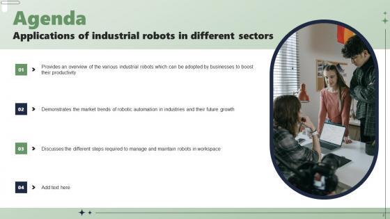 There are so many reasons you need a Agenda Applications Of Industrial Robots In Different Sectors Pictures Pdf. The first reason is you can not spend time making everything from scratch, Thus, Slidegeeks has made presentation templates for you too. You can easily download these templates from our website easily. Our Agenda Applications Of Industrial Robots In Different Sectors Pictures Pdf are topically designed to provide an attractive backdrop to any subject. Use them to look like a presentation pro.