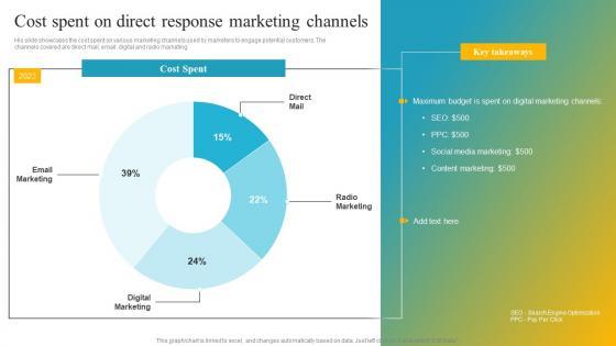 His slide showcases the cost spent on various marketing channels used by marketers to engage potential customers. The channels covered are direct mail, email, digital and radio marketing. Do you have an important presentation coming up Are you looking for something that will make your presentation stand out from the rest Look no further than Effective Customer Engagement With Direct Response Cost Spent On Direct Response Microsoft Pdf. With our professional designs, you can trust that your presentation will pop and make delivering it a smooth process. And with Slidegeeks, you can trust that your presentation will be unique and memorable. So why wait Grab Effective Customer Engagement With Direct Response Cost Spent On Direct Response Microsoft Pdf today and make your presentation stand out from the rest. His slide showcases the cost spent on various marketing channels used by marketers to engage potential customers. The channels covered are direct mail, email, digital and radio marketing.